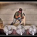 Klaus the German sports fan stakes his place at the finishing line to the 2012 Olympics marathon race.