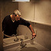 Uri Geller makes a start on corrogating a new door for his storage unit.